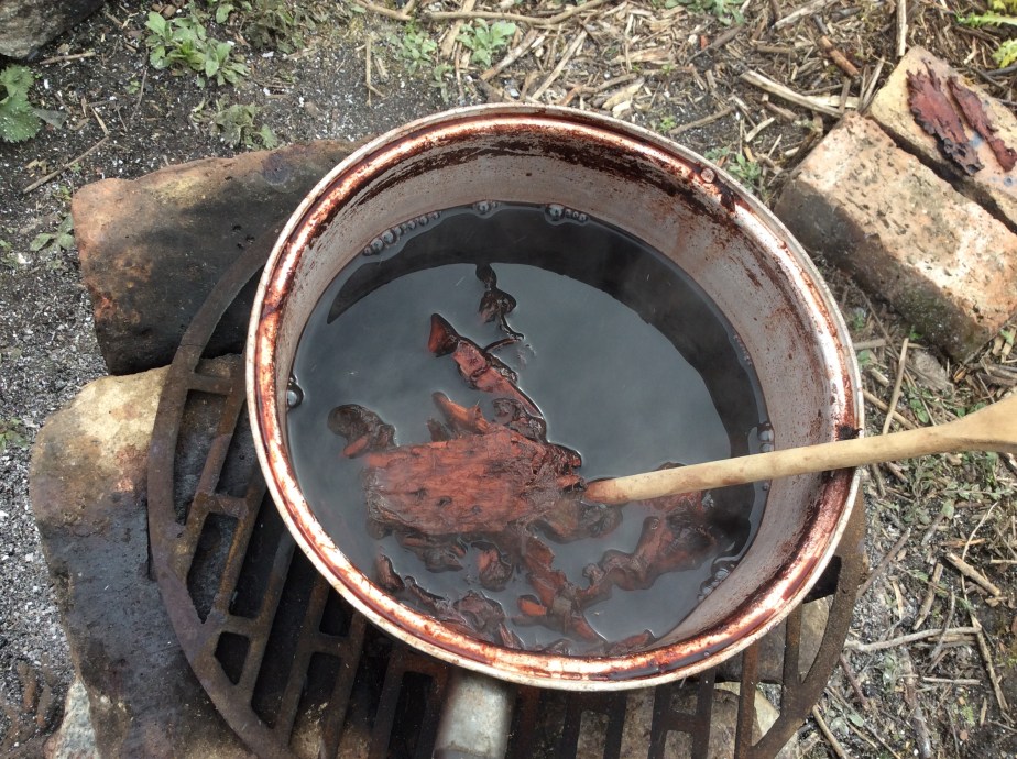 Spring in the walled garden provided the inspiration and many of the ingredients needed to begin. Space in a timeless natural environment, the magic rocket stove, willow bark and nettles to make colour in an old pan.