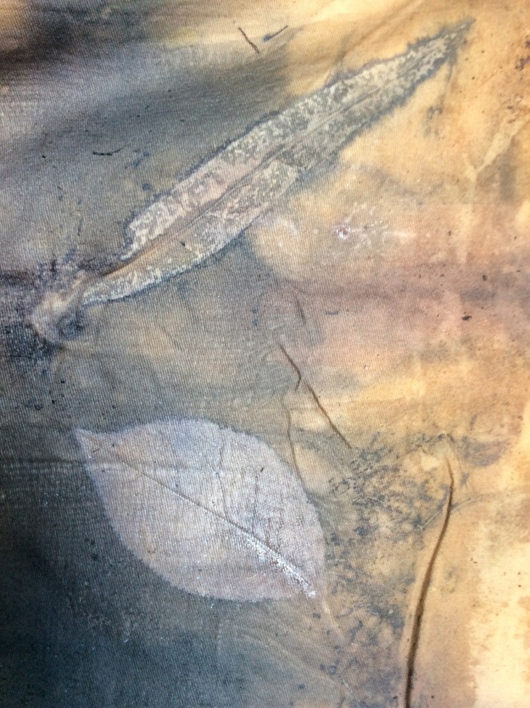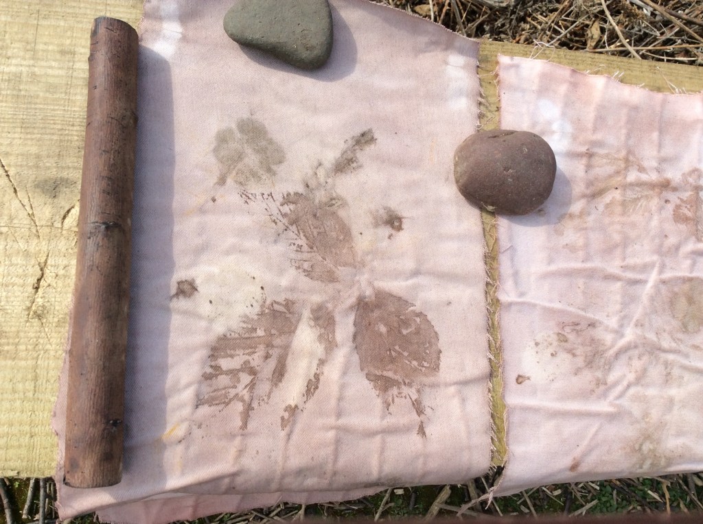 Some inherited watercolour papers were used at first and then donated or salvaged fabrics for botanical printmaking with fresh leaves and flowers. Early spring gave few choices in the chill of a Scottish garden, however thickets of the humble bramble and winter weeds opened my eyes to the possibilities. Midsummer brought a profusion of growth and species giving many choices and different results.